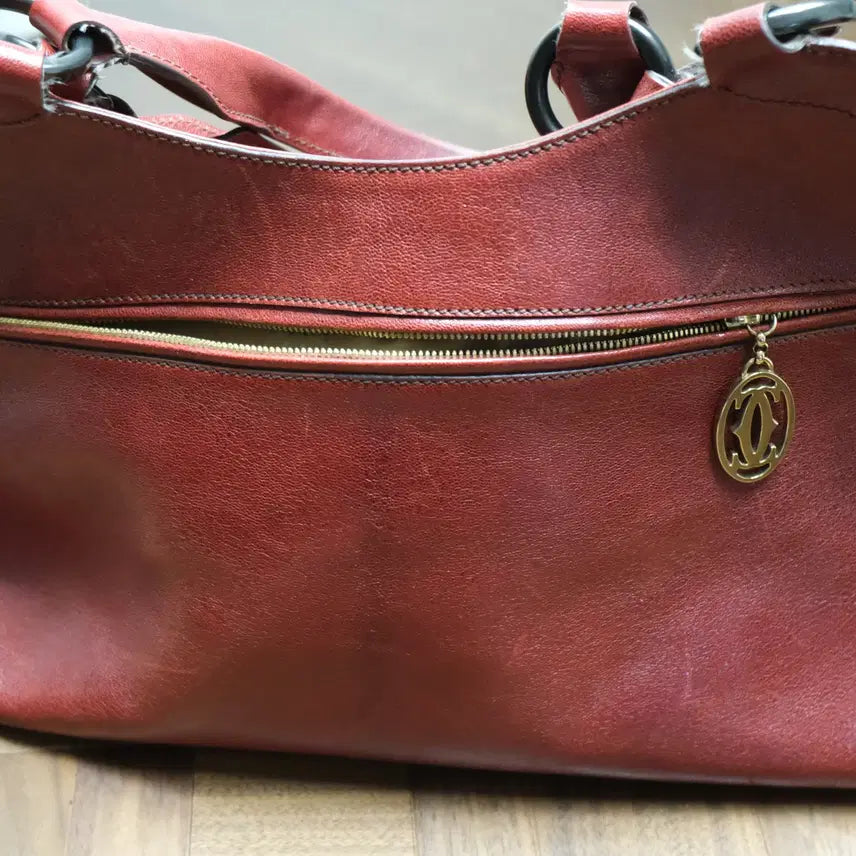 The previous owner purchased this bag from a pre-owned luxury goods store for around 800,000 KRW. The bag features Cartier's signature luxurious red color, and the leather appears durable.