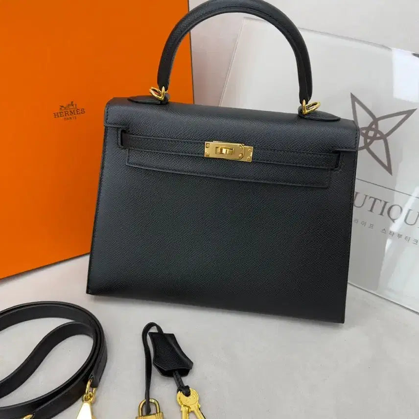 [BUNJANG] Hermès Kelly 25 Black Gold Hardware Tote Bag / [국내백화점풀셋]에르메스 켈리 25 블랙금장 토트백 U각인