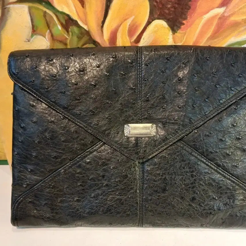 [BUNJANG] Black Ostrich Embossed Clutch Bag / 블랙 오스트리치 엠보 클러치 백 타조가죽