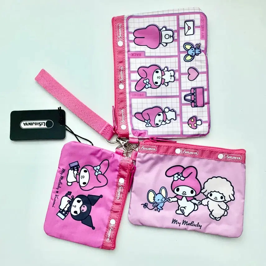 [BUNJANG] Sanrio My Melody Kuromi 3-Piece Zipper Pouch Clutch Bag / lishijinya산리오 마이멜로디 쿠로미 3종 지퍼 파우치 클러치백
