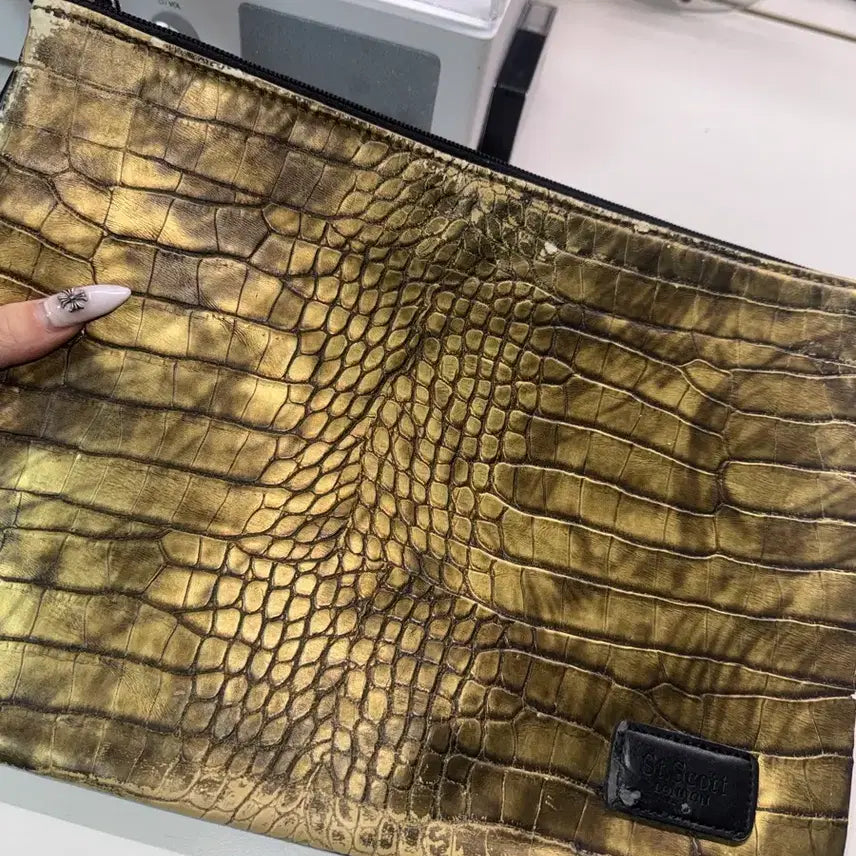 [BUNJANG] St. Scott Gold Crocodile Pattern Clutch / St.Scott 세인트 스코트 금장 악어 패턴 클러치