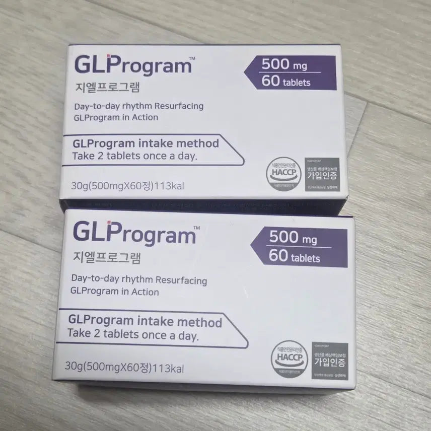 미개봉 GL프로그램 500mg 60정 2박스입니다. 하루에 2알씩 섭취하는 제품입니다. HACCP 인증 받은 제품이니 안심하고 드세요.
