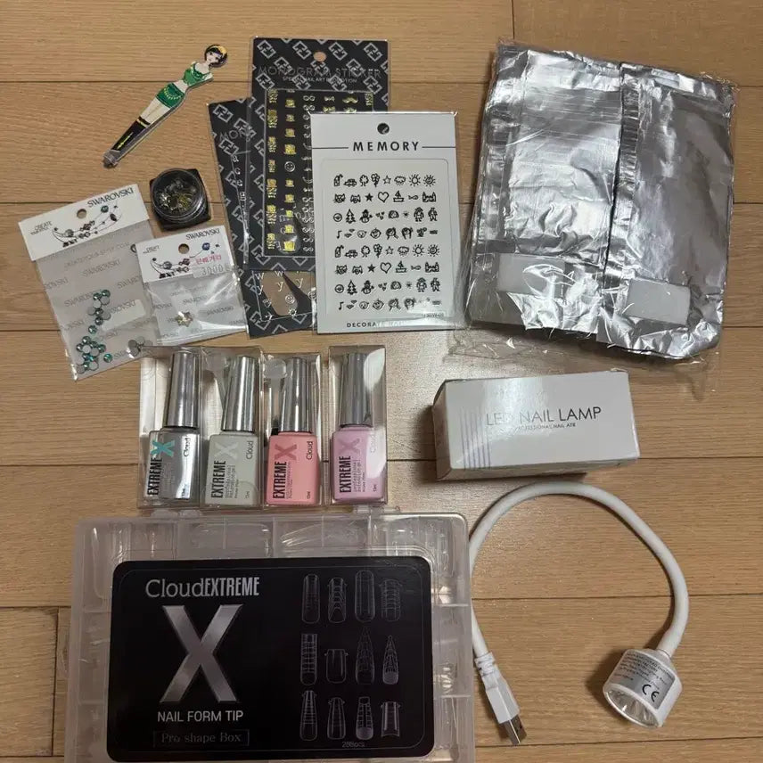 [BUNJANG] Nail Extension Full Set with LED Lamp and 100 Soak-Off Foils / (미개봉새상품) 네일연장풀세트+가큐어램프+쏙오프호일100매