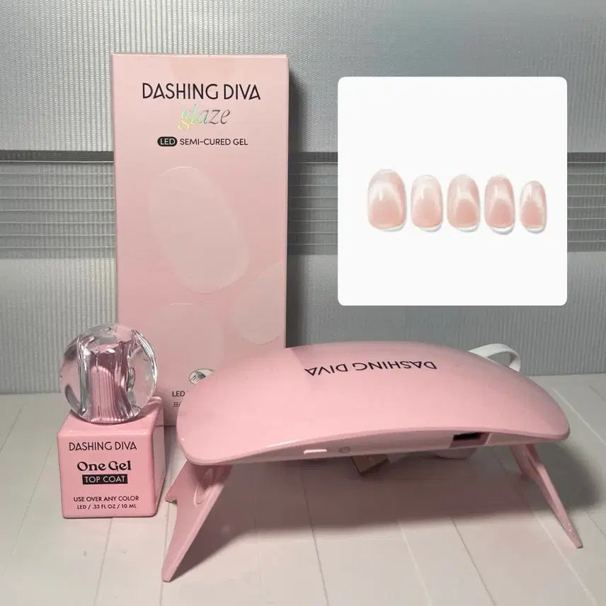 [BUNJANG] Dashing Diva Glaze (Glint Nudy) Gel Nail Set / 데싱디바 젤네일 글레이즈(글린트누디) + 램프 + 탑코트 일괄