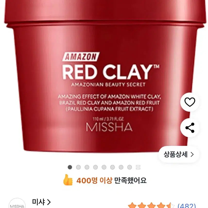 [BUNJANG] Misha Amazon Red Clay Pore Mask / 미샤 아마존 레드 클레이 모공 마스크 110ml