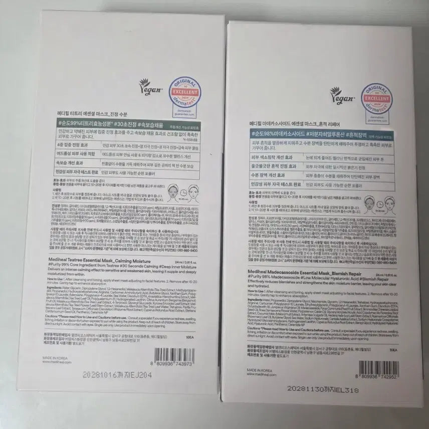 [BUNJANG] Mediheal Madecassoside Tea Tree Mask Pack (20 Masks) / 일괄 메디힐 마데카소사이드 티트리 마스크팩 각 10매 총 20매 박스