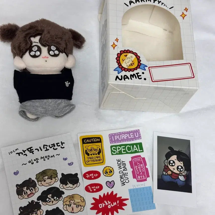 앙증맞은 꾹뚜기 정국 인형 판매합니다. 인형 박스랑 스티커, 포토카드 등 풀세트로 드려요. 아끼는 인형이라 상태 좋습니다. (비닐만 뜯고 거의 만지지도 않았어요) 상태 최상! 문의 없으시면 바로 안전결제해주시면 됩니다!
