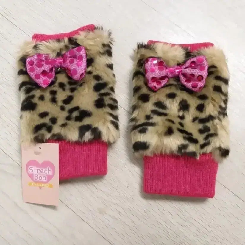[BUNJANG] Vintage Leopard Print Ribbon Fur Hand Warmer / 빈티지 레오파드 리본 퍼 핸드워머 호피 오네갸루 로리타 양산형지뢰계 핀터