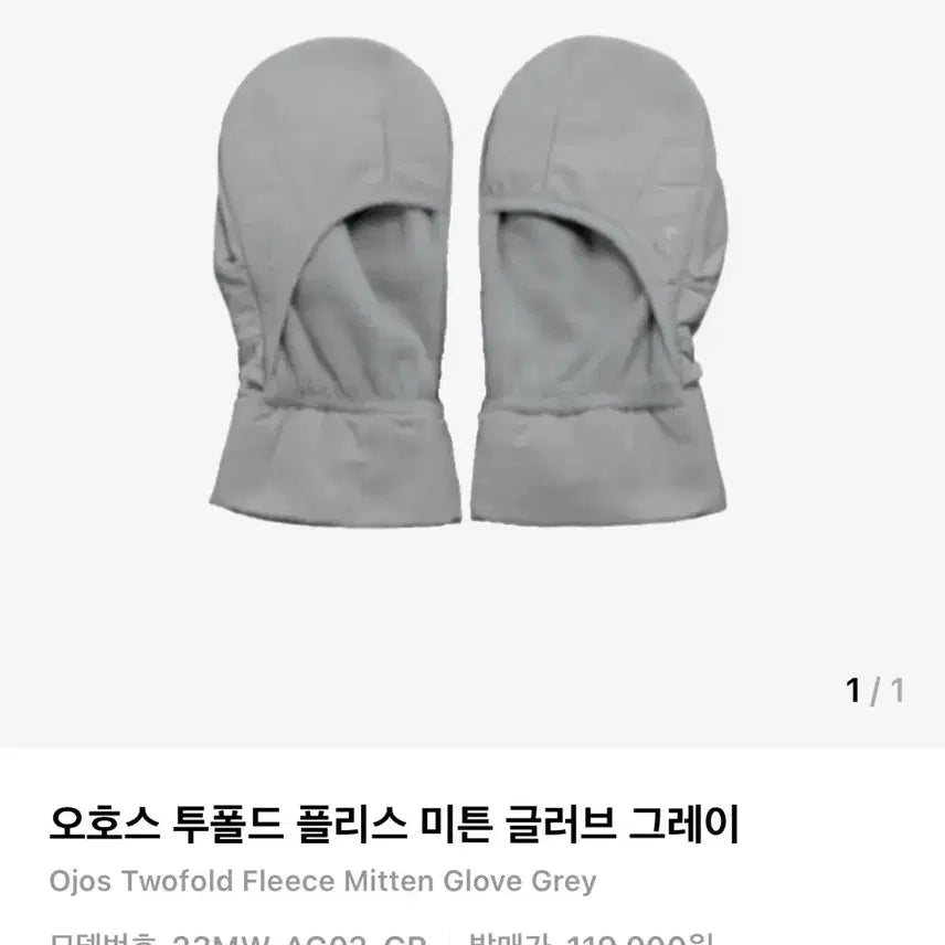 [BUNJANG] Ohaus Grey Two-Fold Fleece Mitten Gloves / {정가 11.9} 오호스 회색 장갑 투폴드 플리스 미튼 글러브 그레이