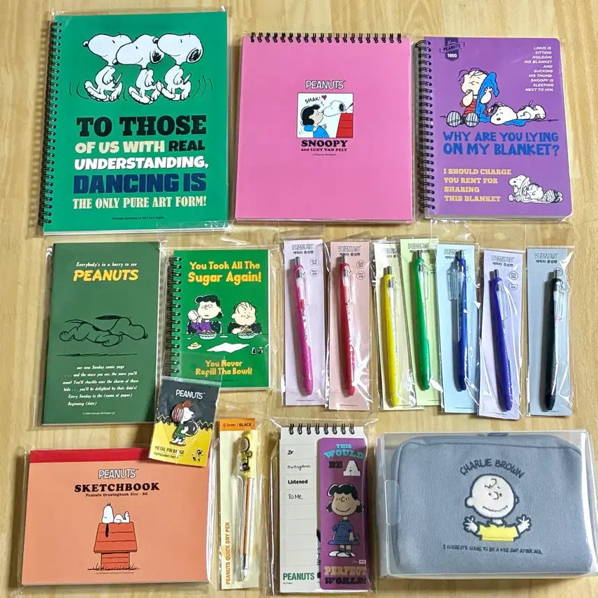 [BUNJANG] Peanuts Snoopy Stationery Set / 선택가능)피너츠 스누피 문구세트(파우치케이스핀뱃지스터디플래너노트볼펜공책