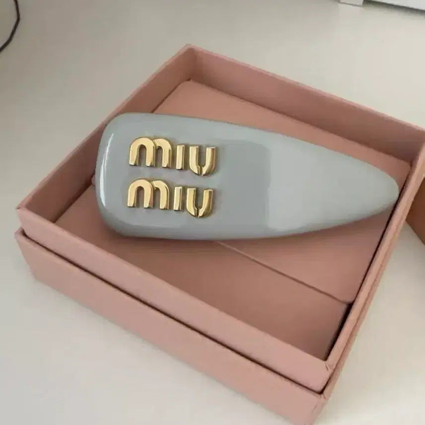 [BUNJANG] MIU MIU Blue Gray Logo Hair Clip Barrette / MIU MIU 블루그레이 로고 헤어클립 바렛타