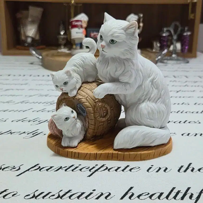 [BUNJANG] Vintage 흰 Cat Family 장식 Figure / 빈티지 흰 고양이 가족 장식 피규어
