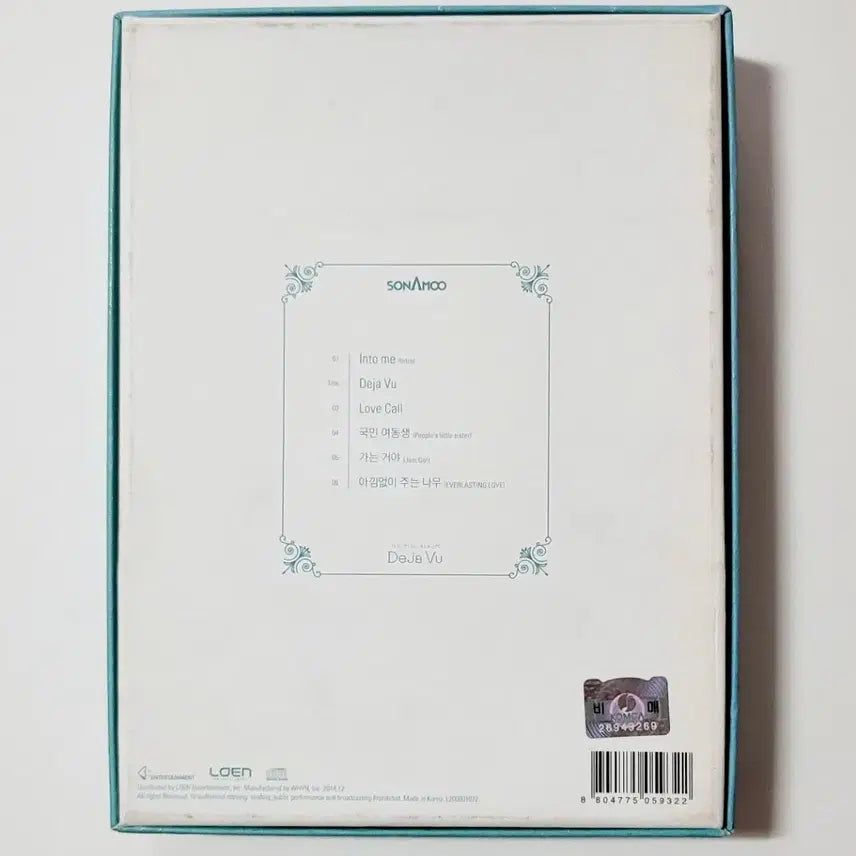상태양호 걸그룹 소나무(SONAMOO)의 첫 번째 미니 앨범 "DEJA VU" 입니다. 아티스트: 소나무(SONAMOO). 앨범명: DEJA VU (데자뷰). 앨범 종류: 1st Mini Album (첫 번째 미니 앨범). 발매일: 2014년 12월 29일. 상태와 오염 : 케이스-약(미미), CD-양호, 책자와 포토카드1장과 프로필카드-양호