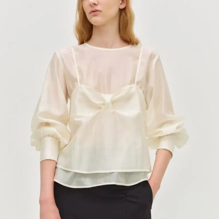 [BUNJANG] Sie Delin Sheer Blouse & Bustier Set / sie 시에 델린 시어 블라우스+뷔스티에 세트