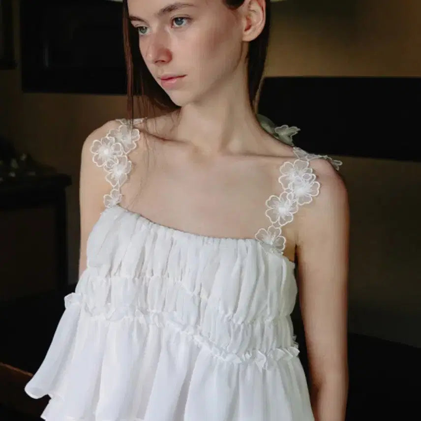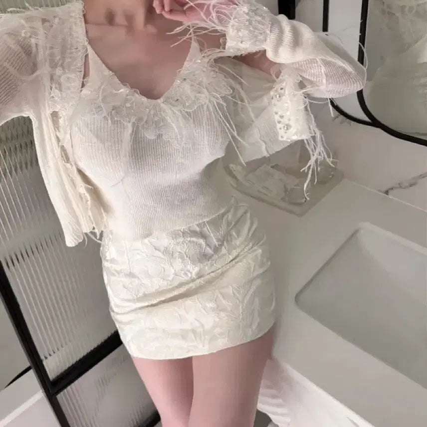 [BUNJANG] White Feather Embellished Top / 화이트 깃털 장식 상의