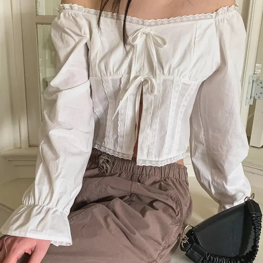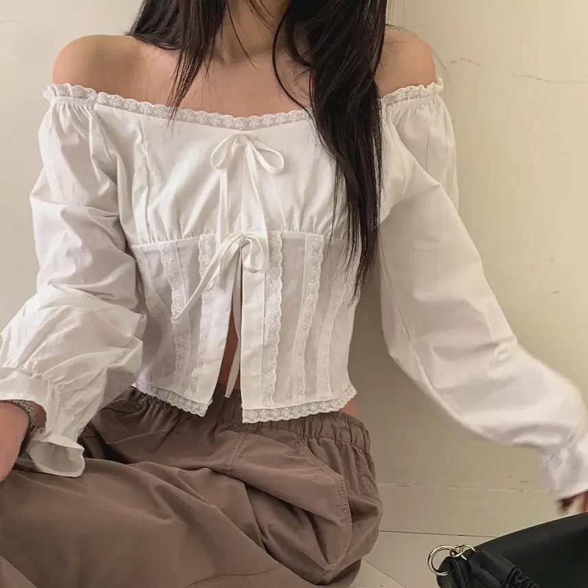 [BUNJANG] Off-Shoulder Ribbon Blouse / 새상품) 오프숄더 리본 블라우스 화이트, 블랙