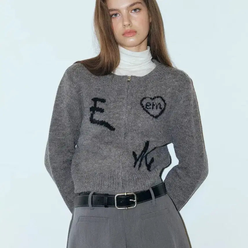 [BUNJANG] EtMone Lettering Zip-up Knit Cardigan / [원가 13.8만원] 에트몽 레터링 집업 니트 가디건