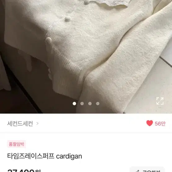 [BUNJANG] Second Second Lace Collar Ivory Cardigan / 반택포) 세컨드세컨 레이스 카라 아이보리 가디건