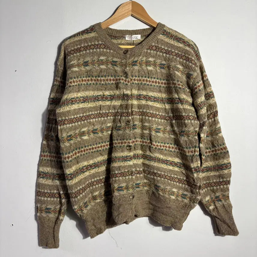 [BUNJANG] Vintage Beige Pattern Knit Cardigan / 빈티지 베이지 패턴 니트 가디건 (무료배송)