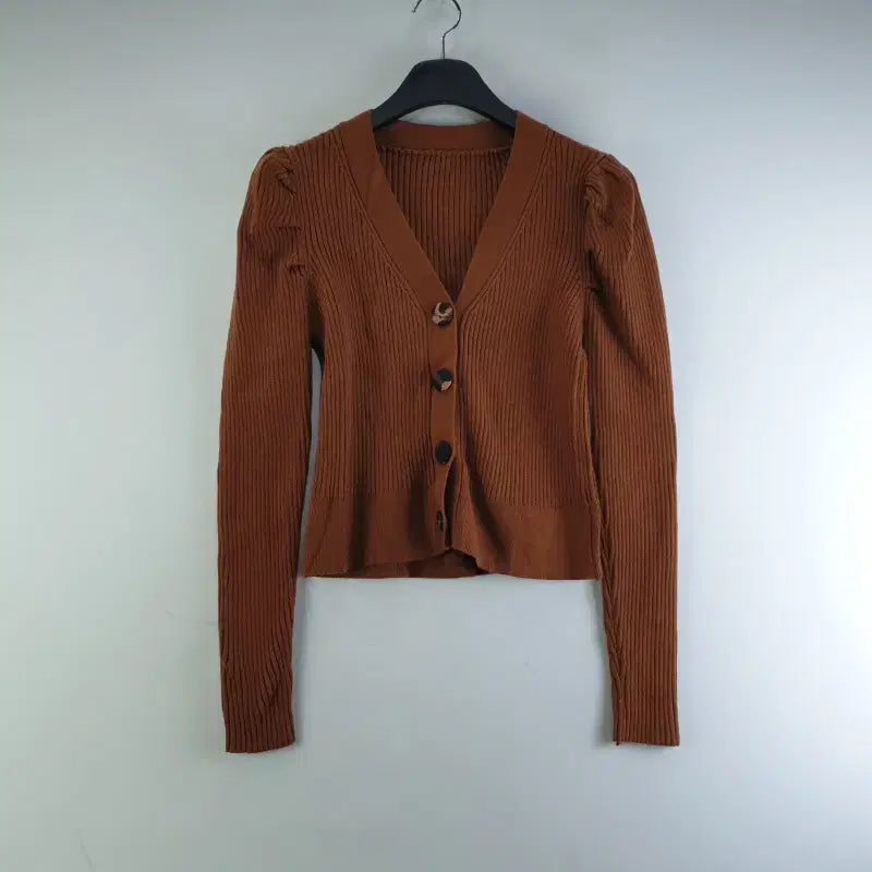 [BUNJANG] Unbranded Brown Puff Sleeve Knit Cardigan / 여성FREE 브라운 퍼프 니트 가디건 M4357