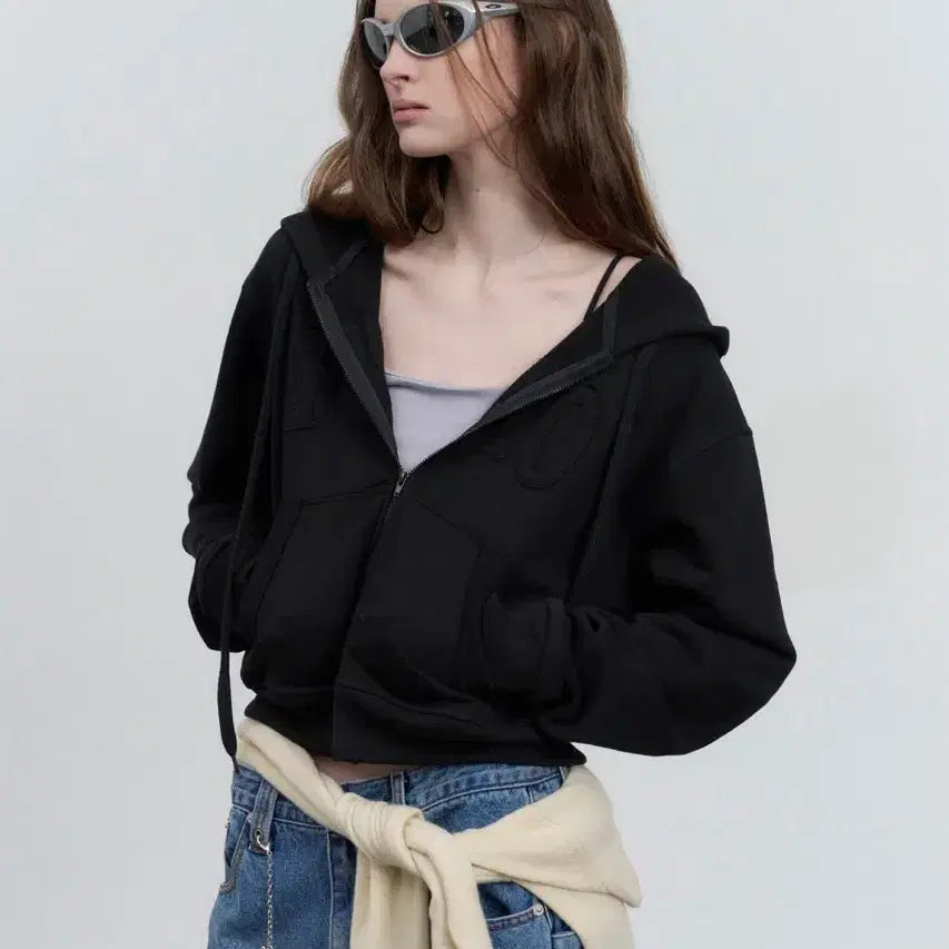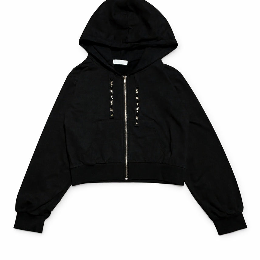 [BUNJANG] CECIL McBEE Black Cubic Crop Hooded Zip-up / JPN 일본 빈티지 Y2K 갸루 세실맥비 블랙 큐빅 크롭 후드집업 M