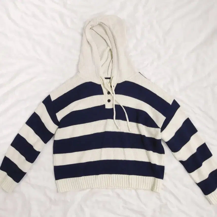 [BUNJANG] Striped Knit Hoodie / 긴팔 스트라이프 후드티 단가라 후드니트