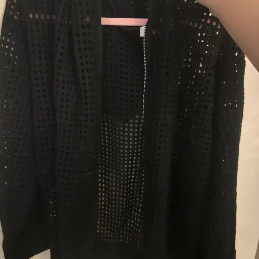 [BUNJANG] Black Mesh Hooded Zip-up / 블랙 그물 후드집업