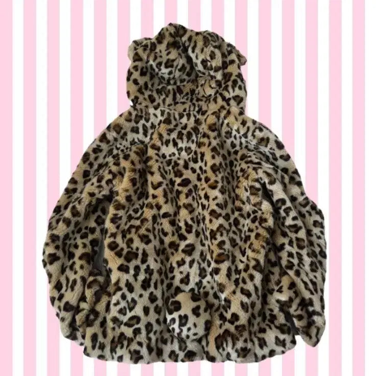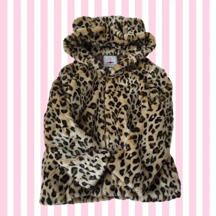 [BUNJANG] WC Gyaru Kumamimi Leopard Hooded Zip-up / WC 갸루 쿠마미미 곰돌이귀 호피 레오파드 후드집업