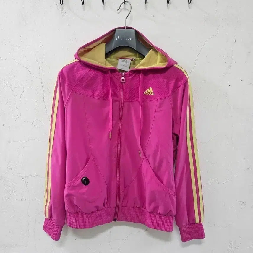 [BUNJANG] Adidas Pink Yellow Colorblock Hoodie Zip-up S / 아디다스 핑크 옐로우 배색 후드 집업 S