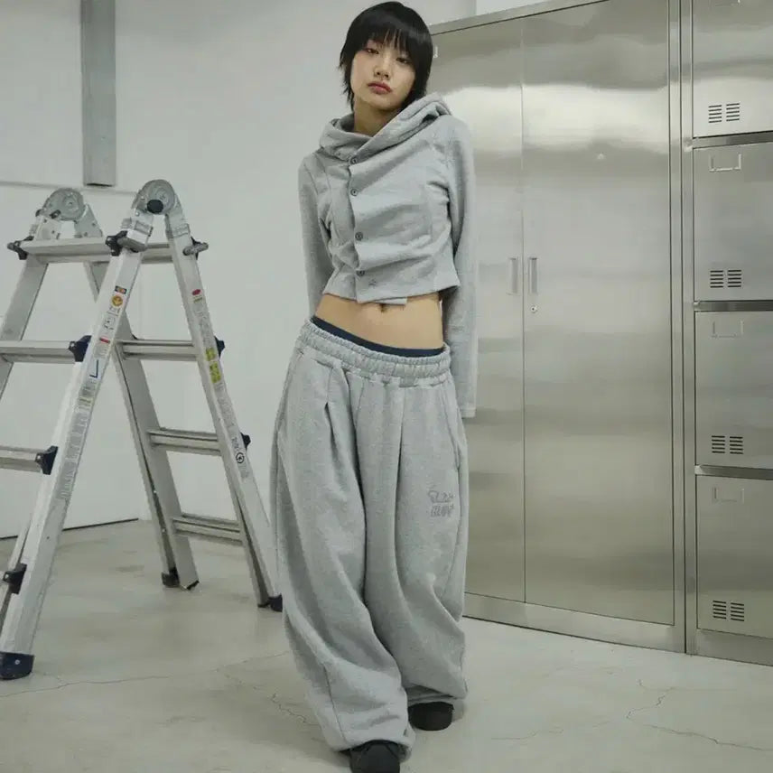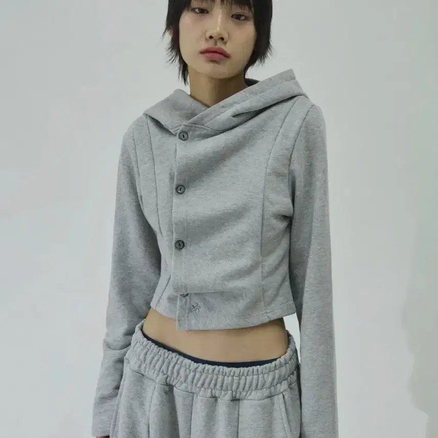 [BUNJANG] Slickglow Small Logo Shirred Hoodie Top / 슬릭글로우 스몰 로고 사이드 버튼 셔링 후드 탑[그레이]