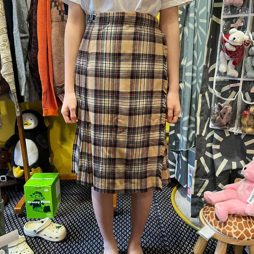 [BUNJANG] Beige Checkered Midi Skirt / 체크무늬 스커트