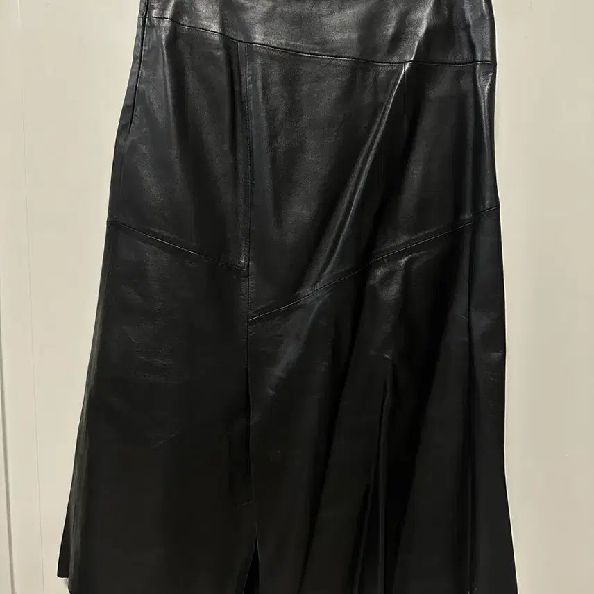 [BUNJANG] A-Line Leather Skirt / 블랙 리얼 레더 A라인 가죽 스커트 새상품 55(F)