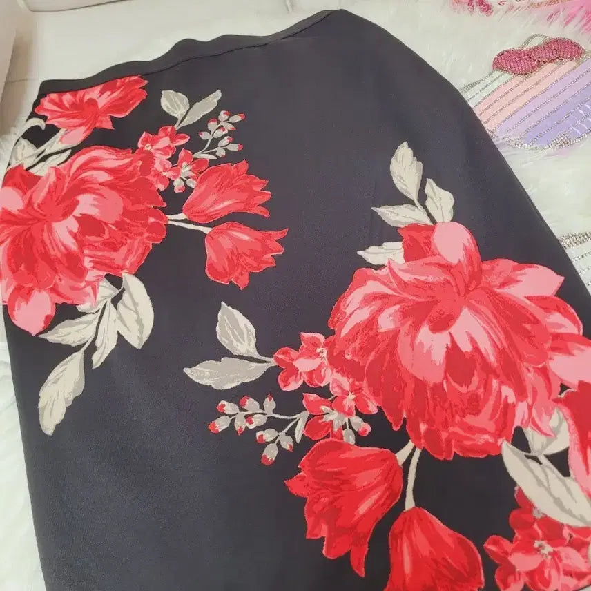 [BUNJANG] Floral Pattern Black Midi Skirt / 플라워 패턴 블랙 스커트 수입