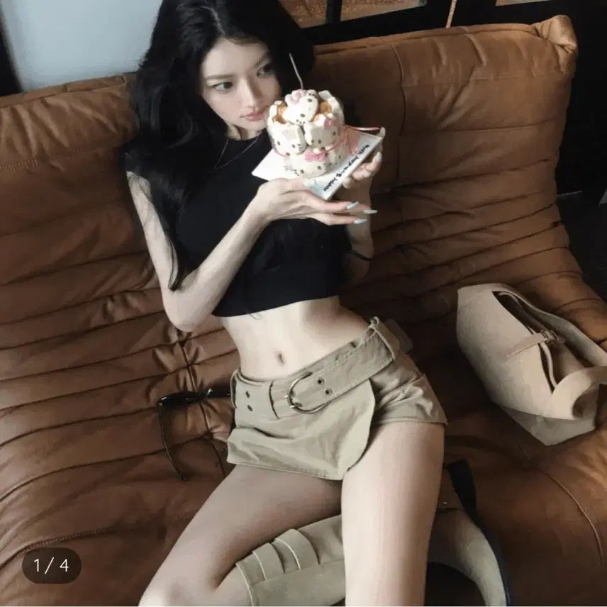 [BUNJANG] Time Herringbone Mini Skirt Shorts / [ 타임 ] 정품 / 여성26 / 신형 헤링본 벨트 미니스커트 반바지