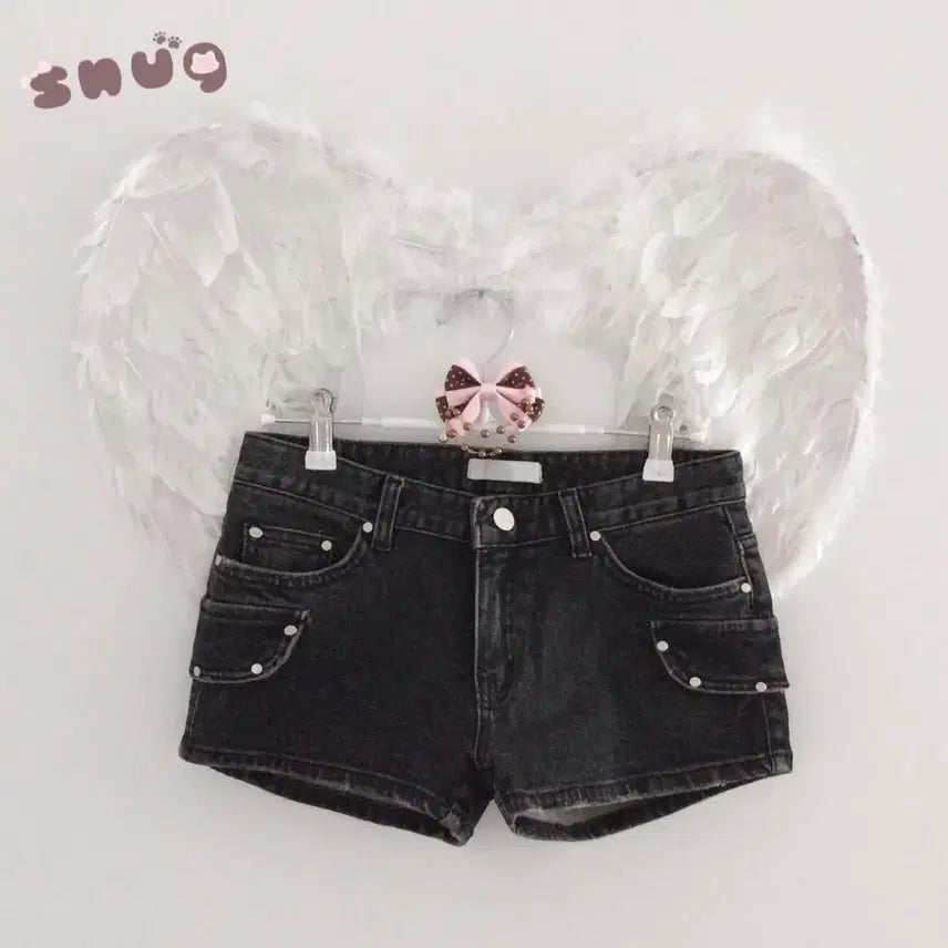 [BUNJANG] Skull Studded Low Rise Shorts / 스컬 스터드 로우 라이즈 반바지 에이블리