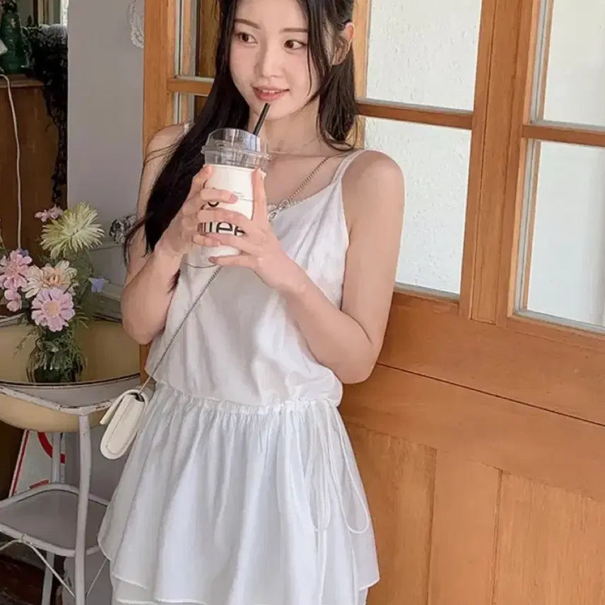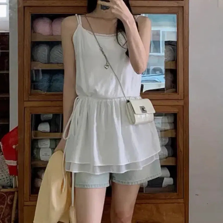 [BUNJANG] Choperland Silky Layered Chiffon Mini Tank Top / 쇼퍼랜드 실키레이어드 쉬폰 미니 나시 블라우스(새제품)