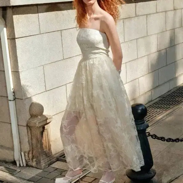 [BUNJANG] MOTF Studio Lace Mesh Tube Wedding Snap Dress / MOTF 스튜디오 레이스 매쉬 튜브 웨딩 스냅 드레스 아이보리화이트