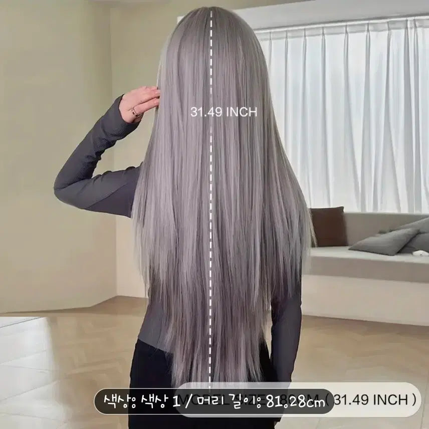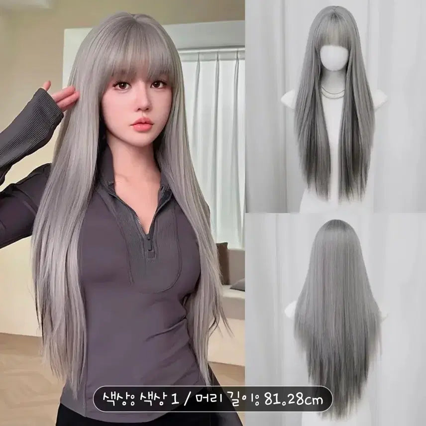 [BUNJANG] Long Hair Full Bangs Wig / 긴머리 풀뱅 가발 회색 새상품