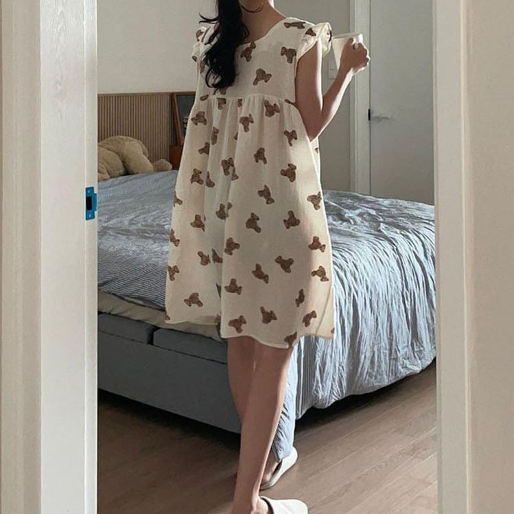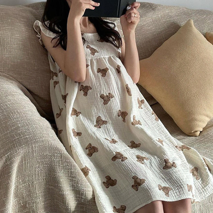 [BUNJANG] Bear Cotton Sleeveless Pajama Dress / 베어 순면 민소매 원피스 잠옷