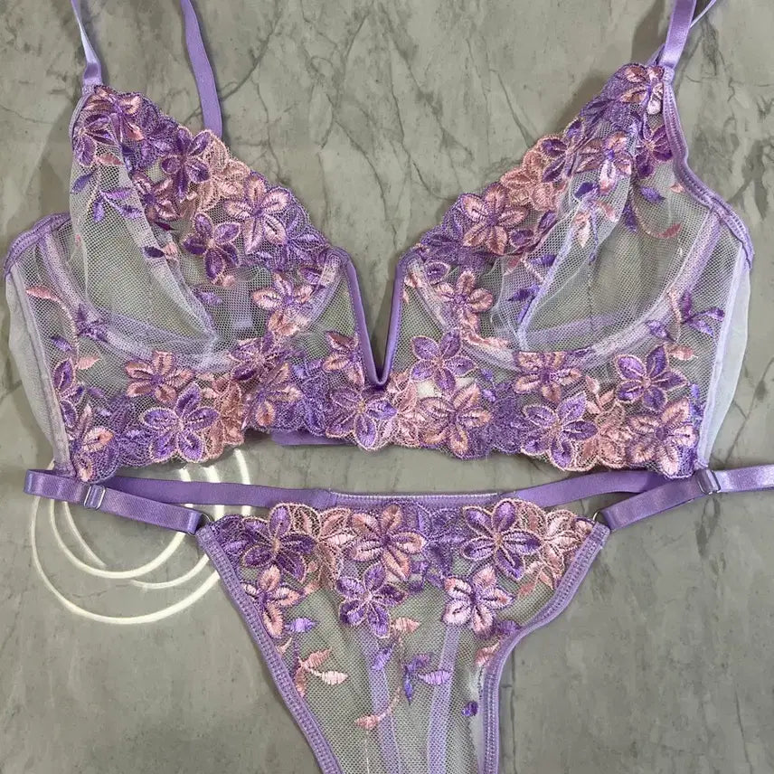 [BUNJANG] Lavender Embroidered Lingerie Set / 라벤더 이벤트 란제리 세트