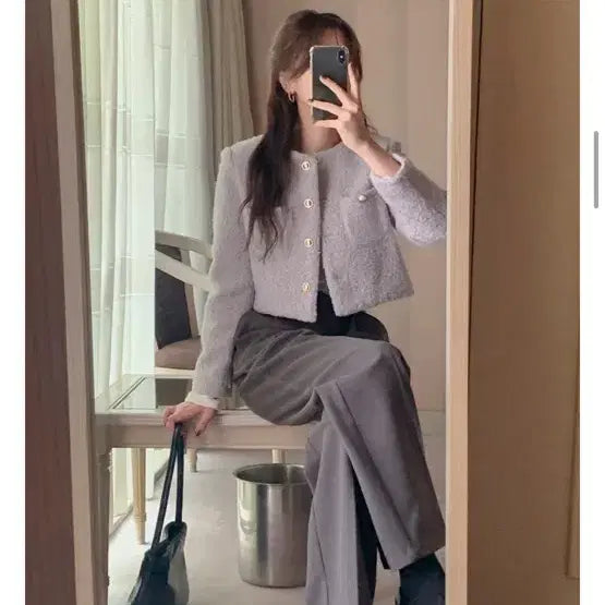 [BUNJANG] JS New York Black Tweed Crop Jacket / JS뉴욕 블랙트위드크롭자켓 박민영룩