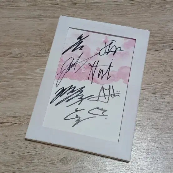 이펙스 멤버들의 친필 싸인이 있는 앨범입니다. 핑크색 배경에 멤버들의 사인이 돋보이네요. 소장 가치 있는 싸인 앨범, 어서 구매하세요! 문의 없으시면 바로 안전결제해주시면 됩니다! 뒷면에 얼룩 약간 있어요