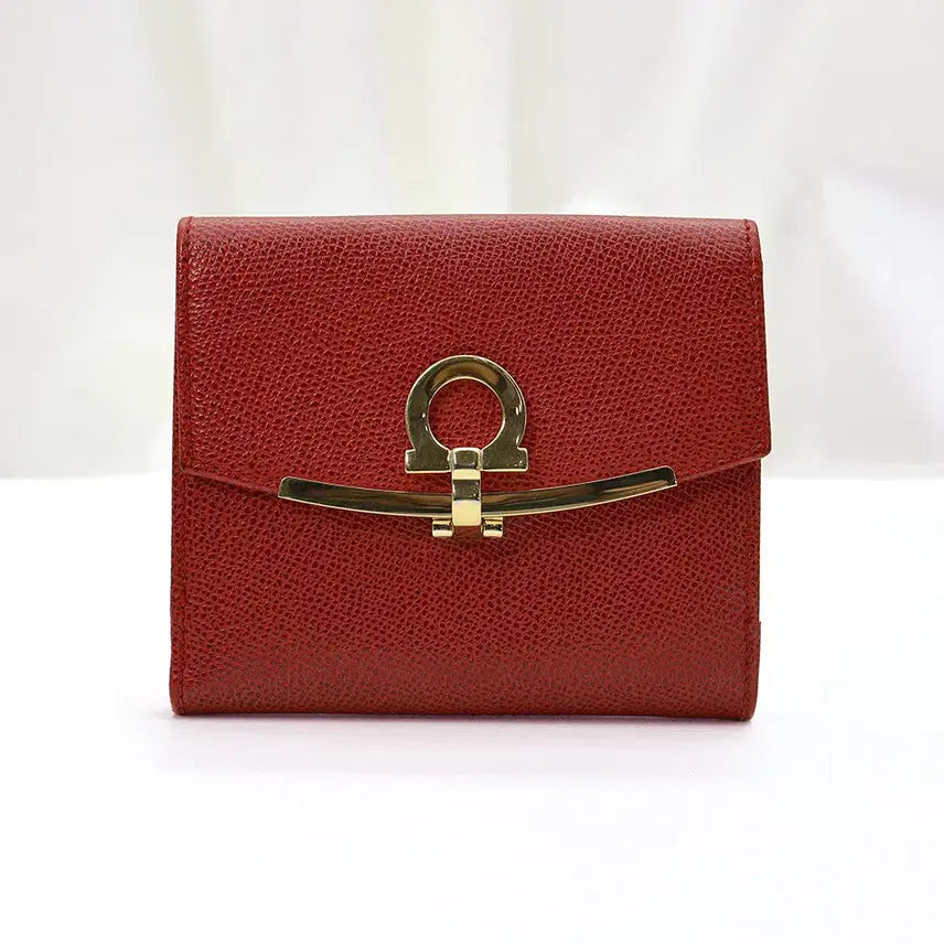 [BUNJANG] Ferragamo Gancini French Wallet / 페라가모 레드 사피아노 금장 간치니 프렌치 반지갑