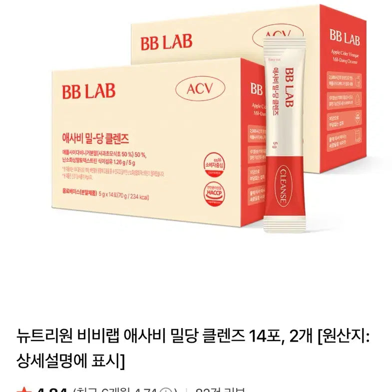 [BUNJANG] Nutrione BB Lab Apple Cider Vinegar Mildang Cleanse / 뉴트리원 비비랩 애사비 밀당 클랜즈 새상품
