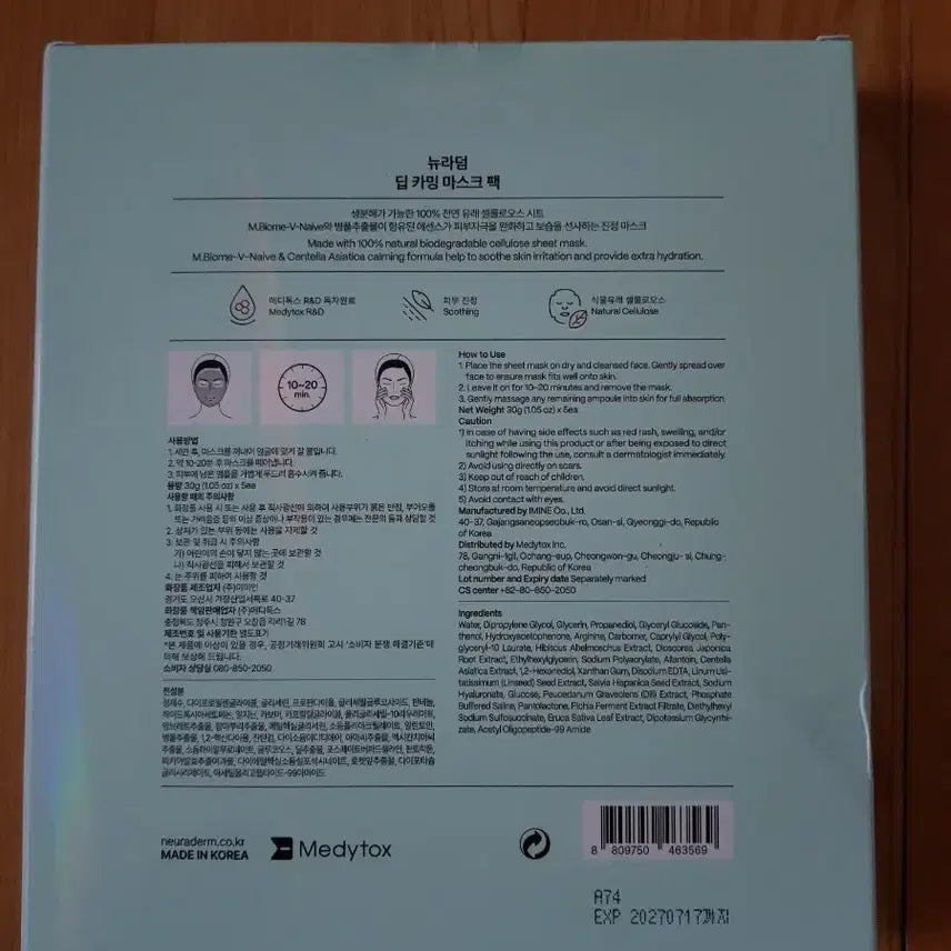 [BUNJANG] Neuraderm Deep Calming Mask Pack (5 Sheets) / 뉴라덤 딥 카밍 마스크팩 5매