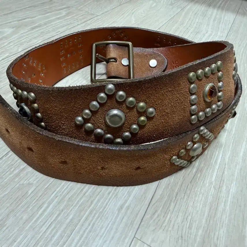 [BUNJANG] Vintage Cracked Leather Beaded Western Stud Belt / 빈티지 크랙레더 비딩 웨스턴 스터드벨트