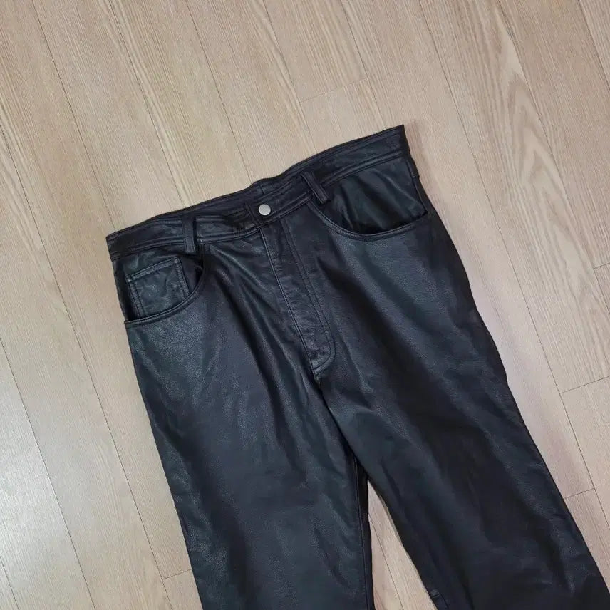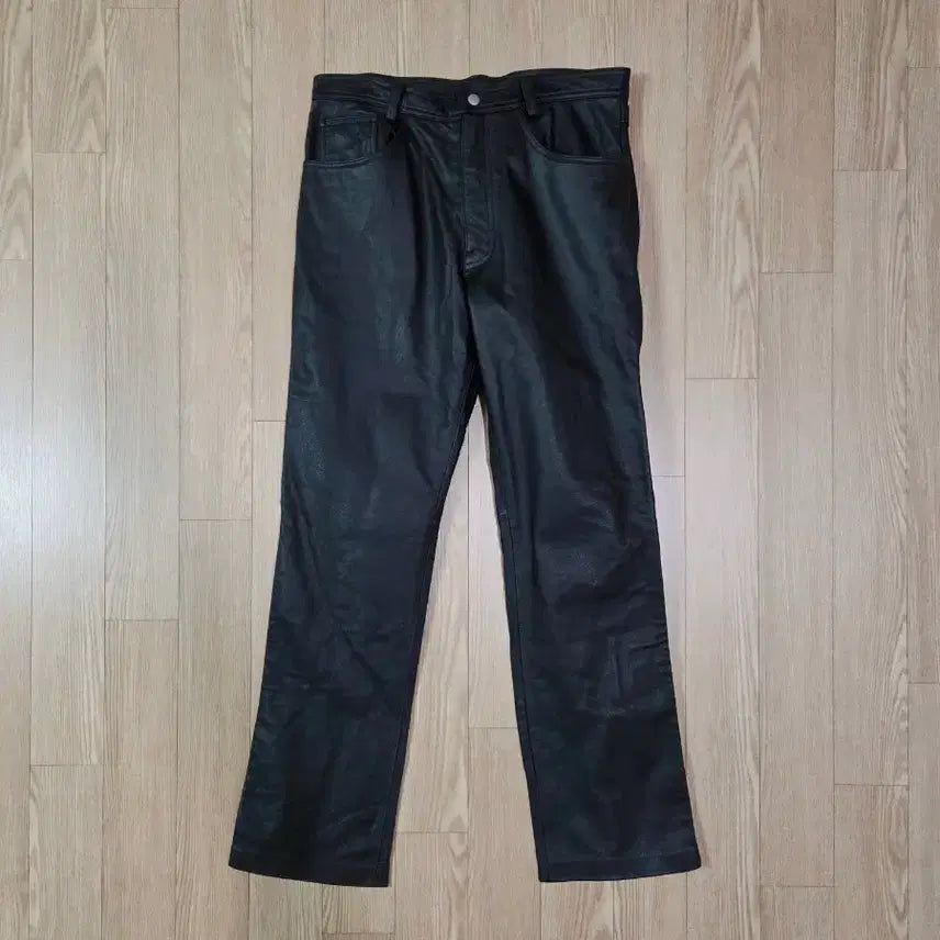 [BUNJANG] MTD Black Lambskin Leather Straight Pants / MTD 블랙 램스킨 레더 스트레이트 팬츠