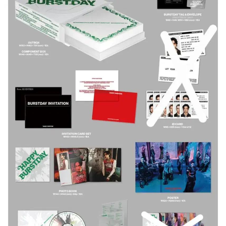 세븐틴 5th 앨범 HAPPY BURSTDAY 개봉 앨범 랜덤상품들은 미포함 입니다 사진에 체크되어 있습니다 서울수도권 택배 3700