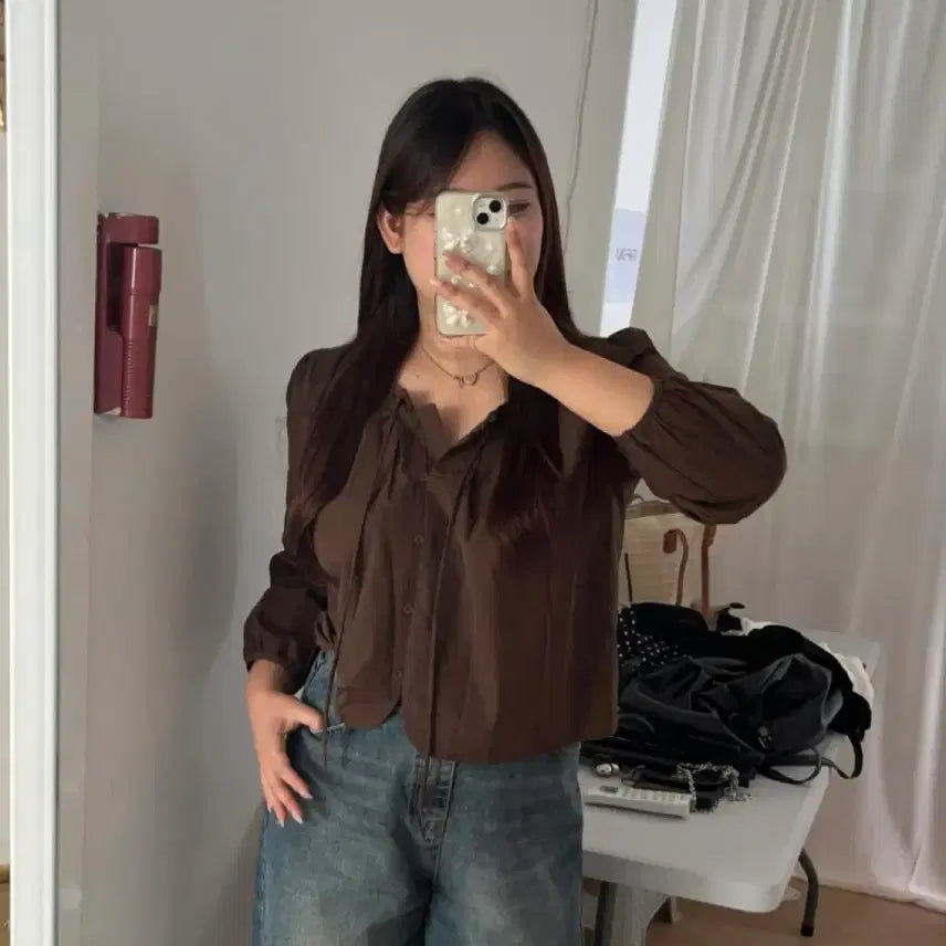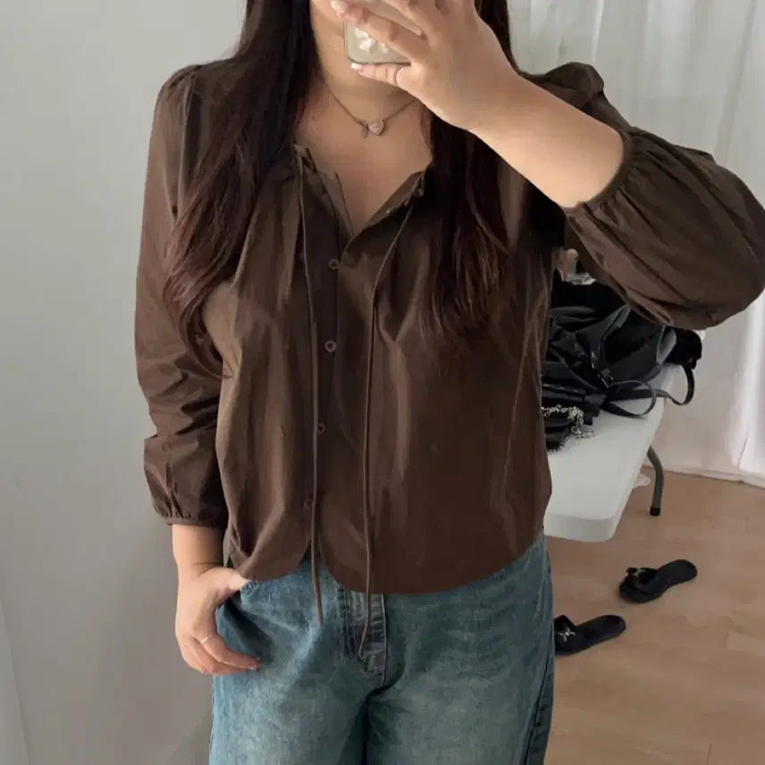 [BUNJANG] Hati 66 Neck Frill Blouse Brown / 하티66 넥프릴 블라우스 브라운 /빅사이즈당당걸데이지투엘리리앤코에이블리