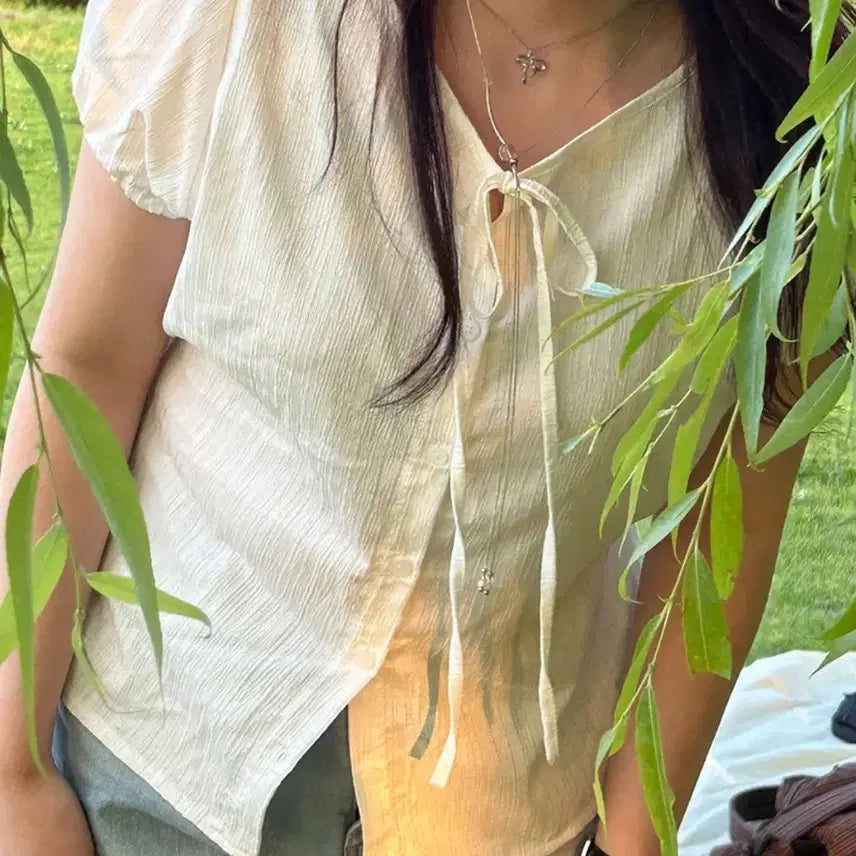 [BUNJANG] Bokja C V-neck Ribbon Blouse / 복자씨 뮤티 브이넥 리본 블라우스 새상품